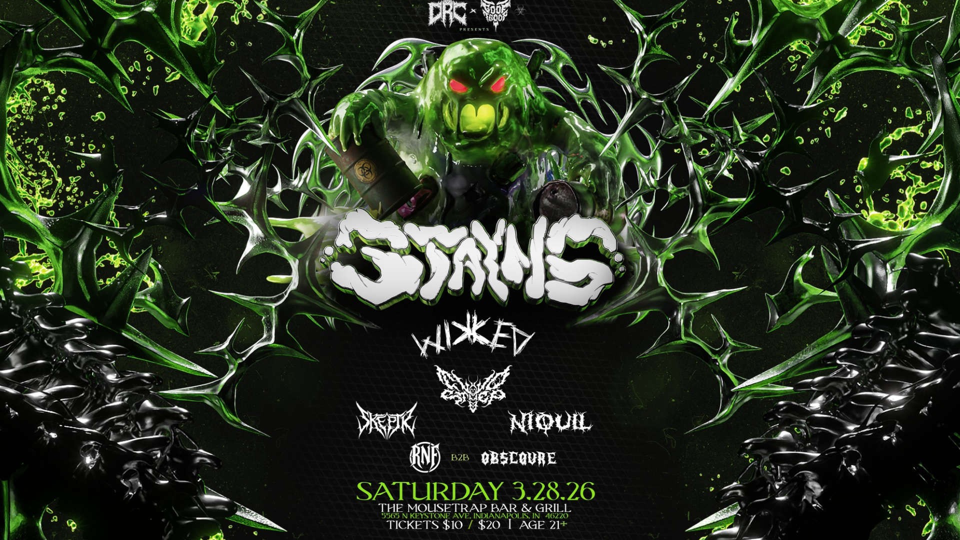 WIKKED INDY DEBUT Rising Denver phenom WIKKED is making his way to the Midwest for his Indianapolis debut. WIKKED recently released his debut collab EP with another blooming CO producer, Plague Flora, titled “PLAGUE WIKKED”. This EP features a brooding, heavy, and evil riddim sound design like no other. WIKKED’s latest solo release, “Ave Maria” is available on Soundcloud w/free download enabled!